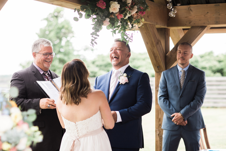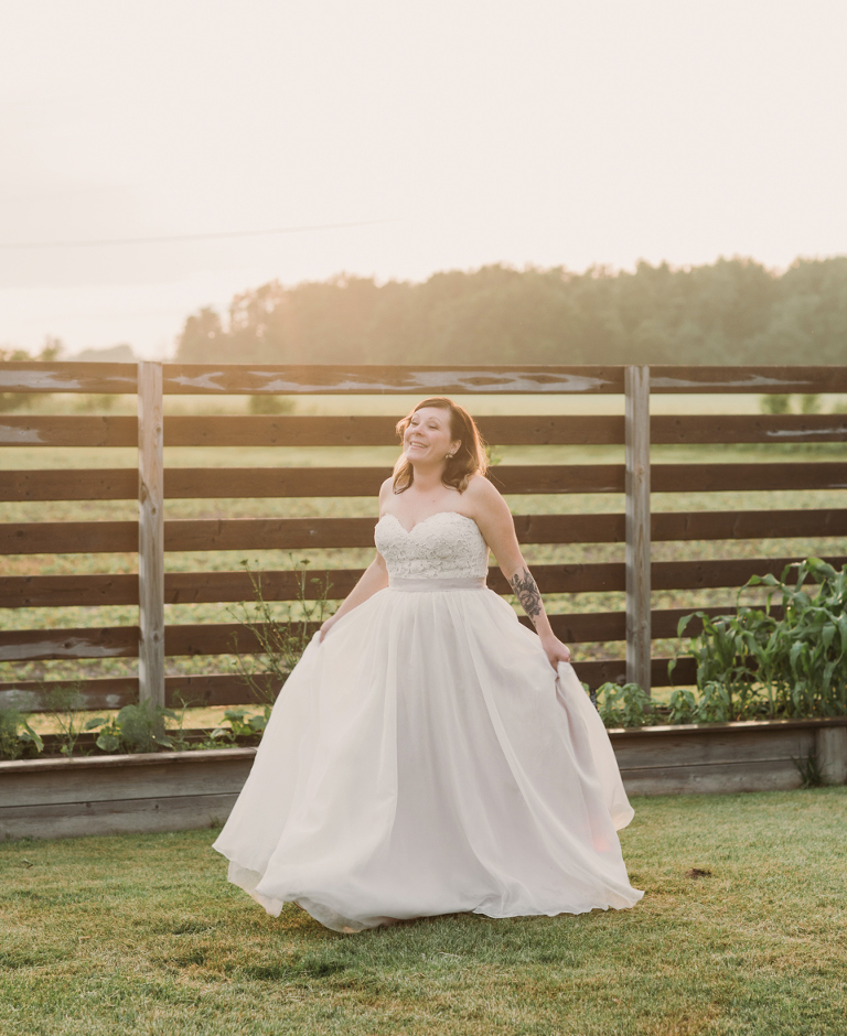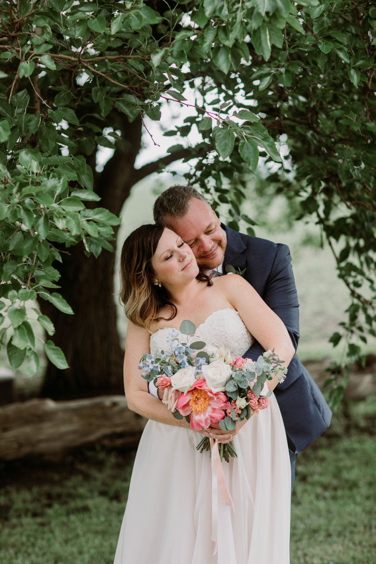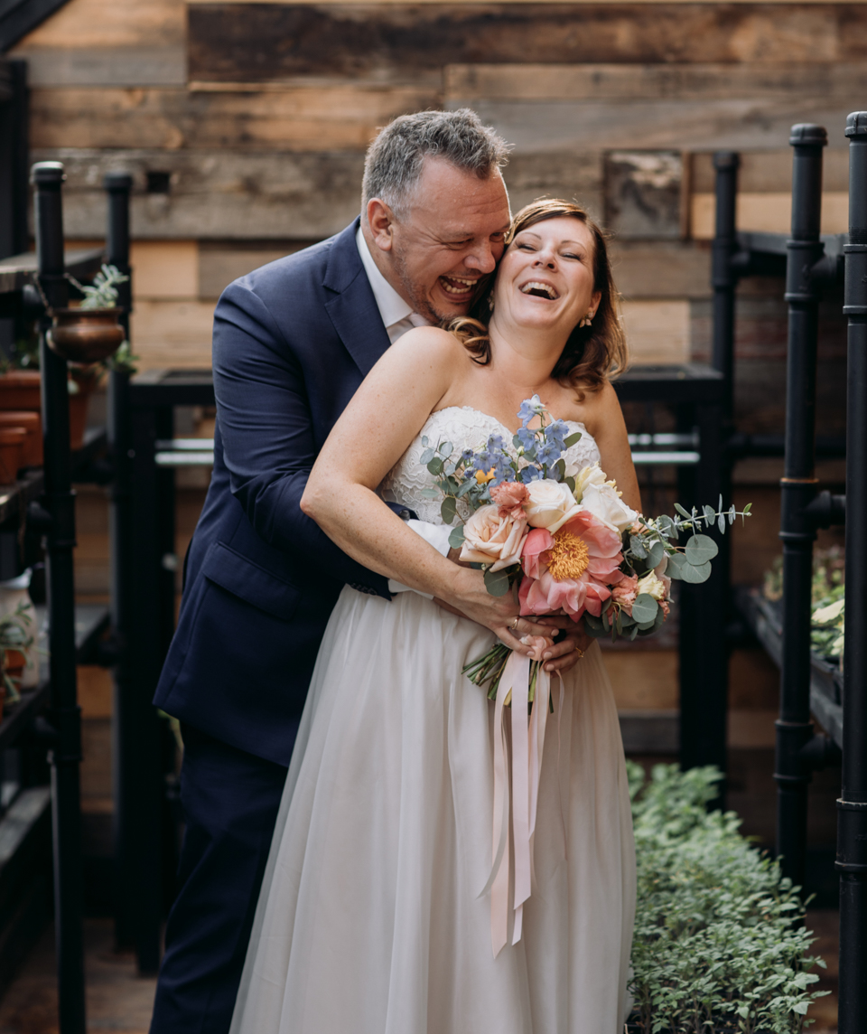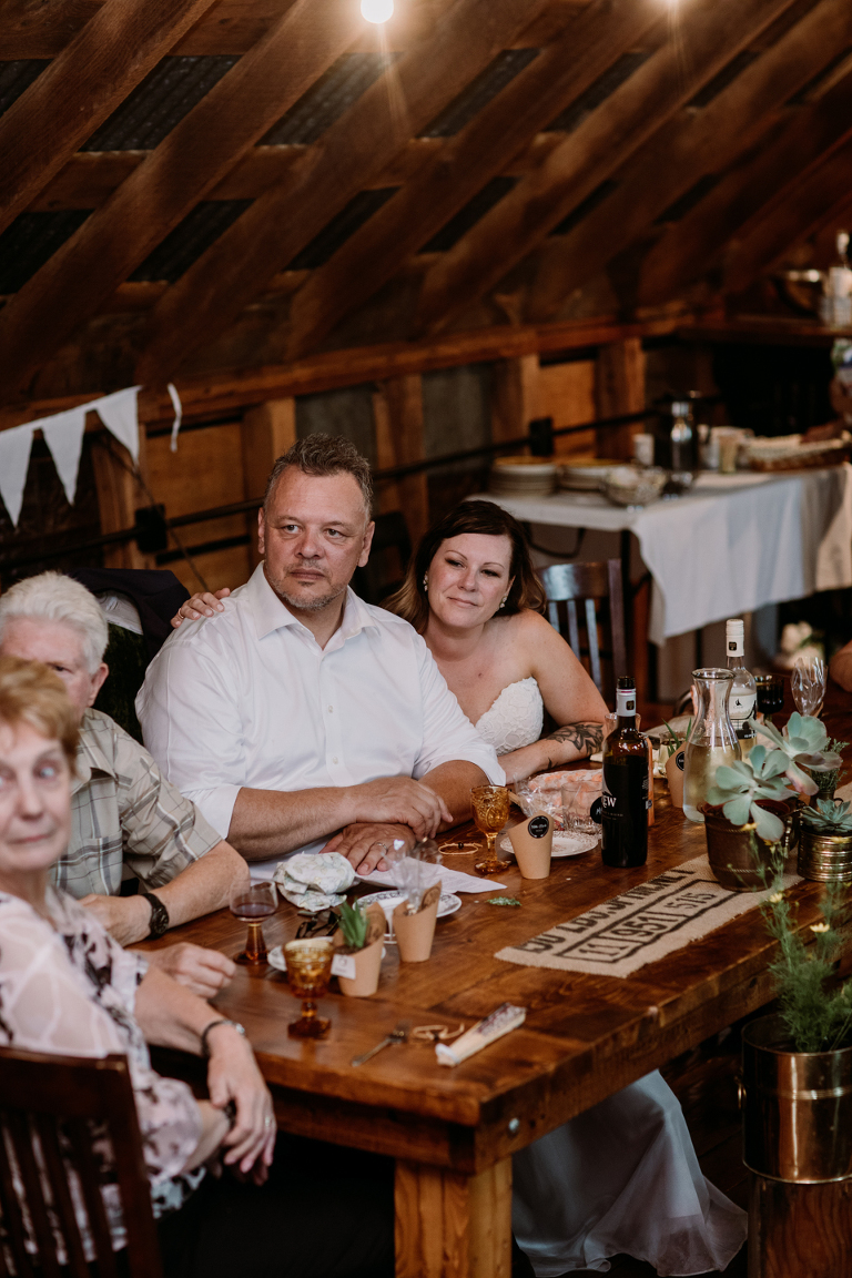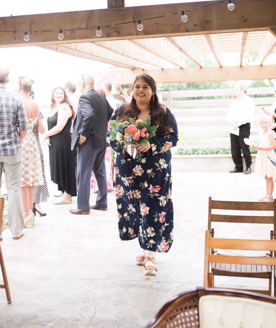 Their beautiful union was a small, intimate affair at 14th Coffee Company in Essex. The venue is beautiful, boasting a small cafe, a barn with a loft, an amazing house rental and gorgeous grounds and gardens. Nikki walked down the aisle in her beautiful blush gown and met Mark underneath a spray of amazing flowers. They wrote their own vows, which cause some tears, smiles and certainly some laughs. Even though their 3 year old daughter Georgia didn’t want to go down the aisle, there were some tender moments with her mom. Cocktails and appetizers were served in the garden before we headed up to the loft in the barn for dinner.