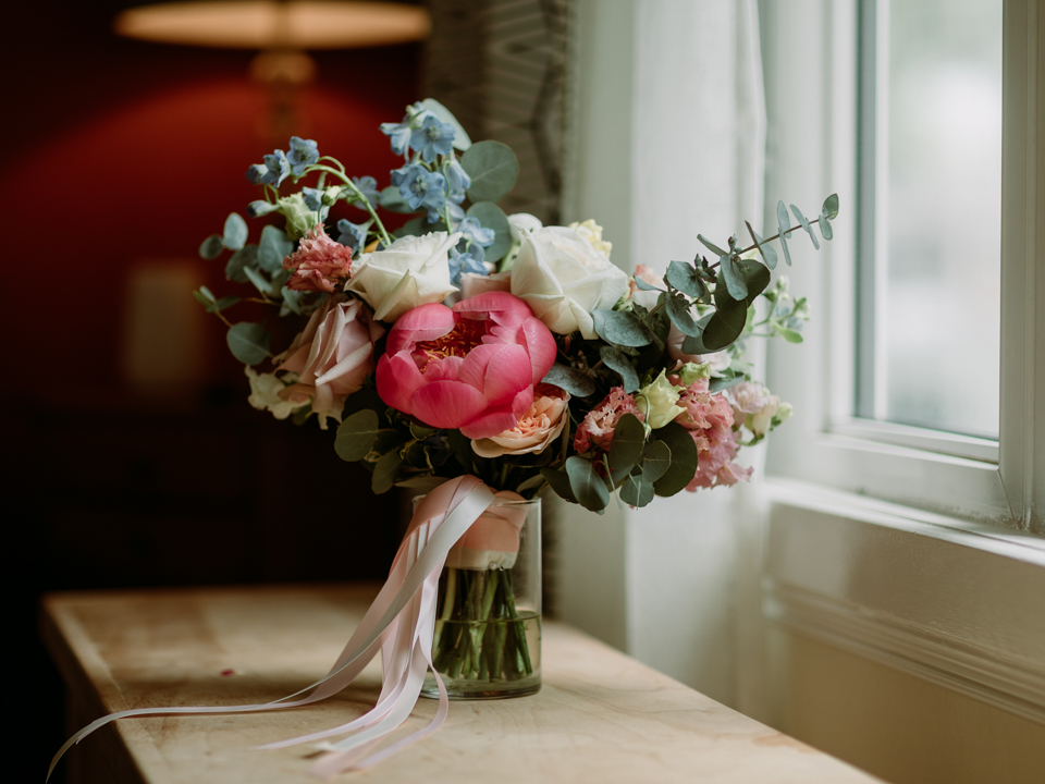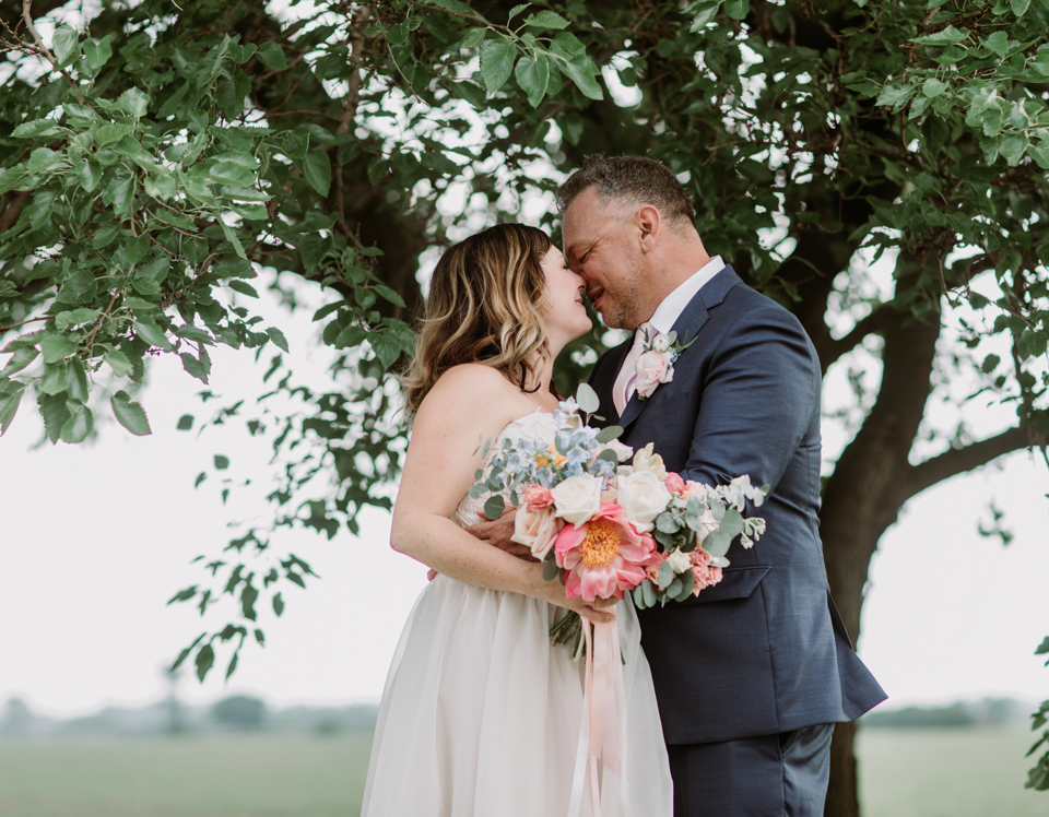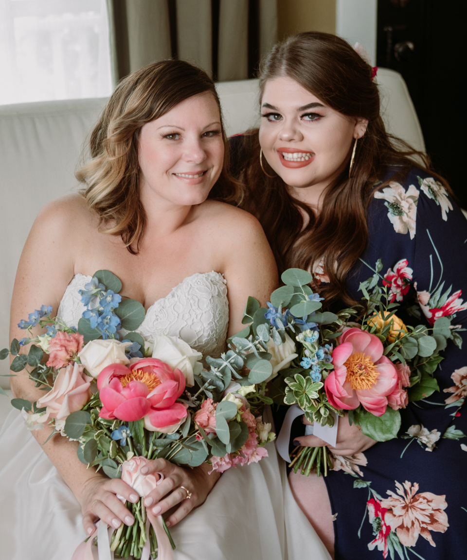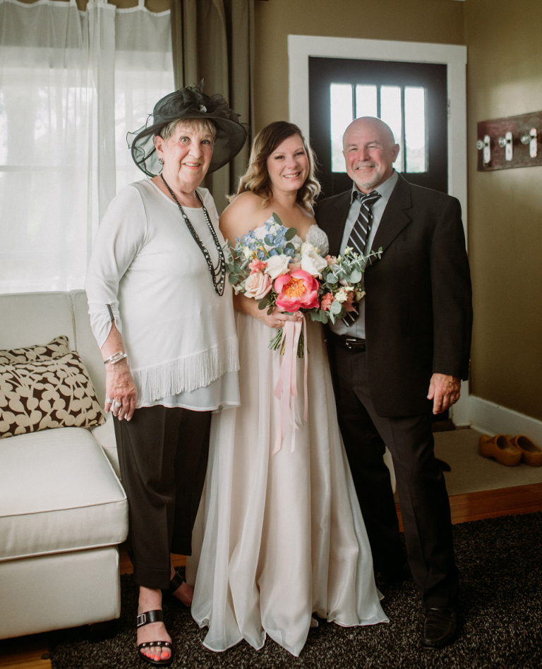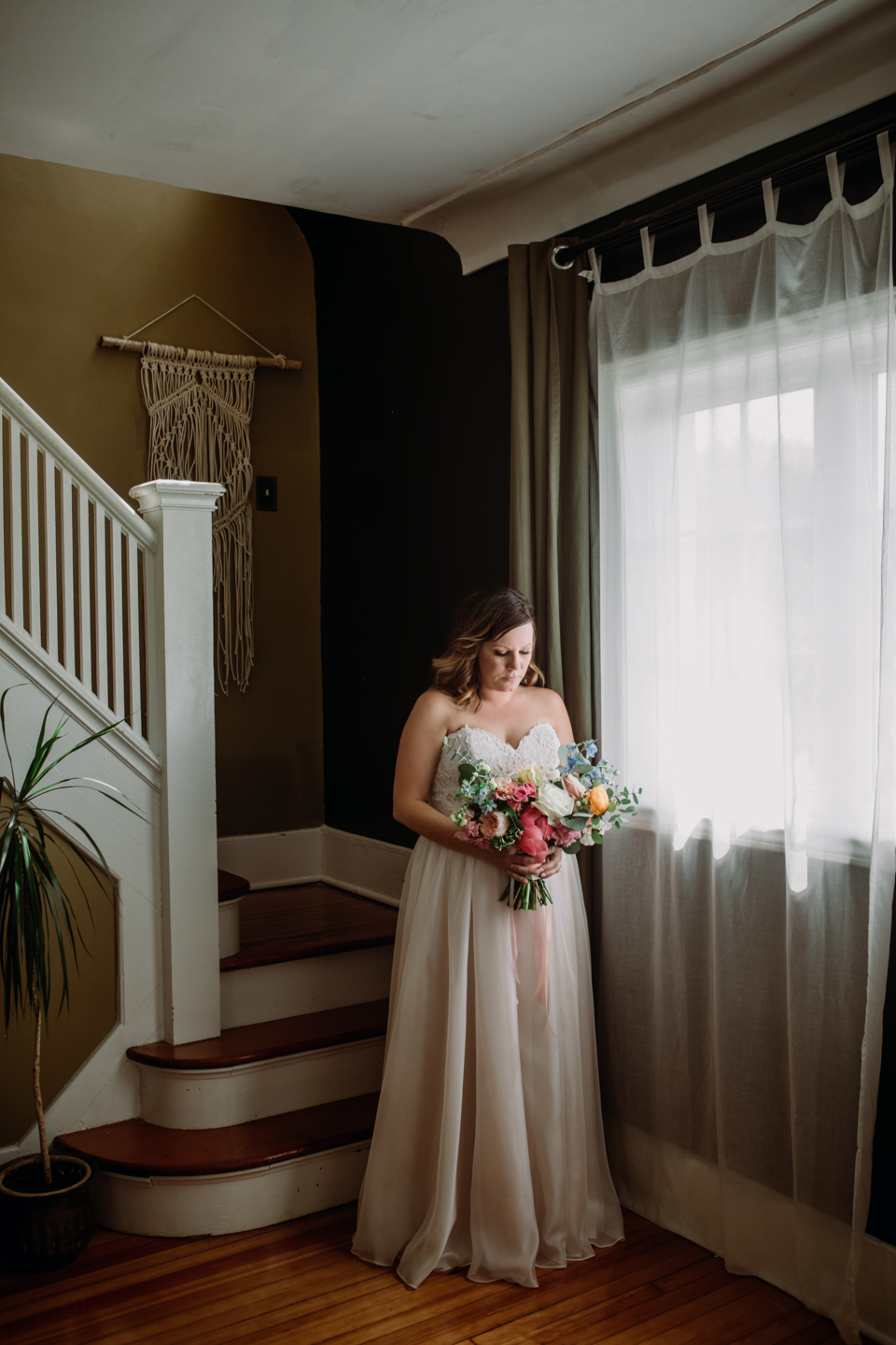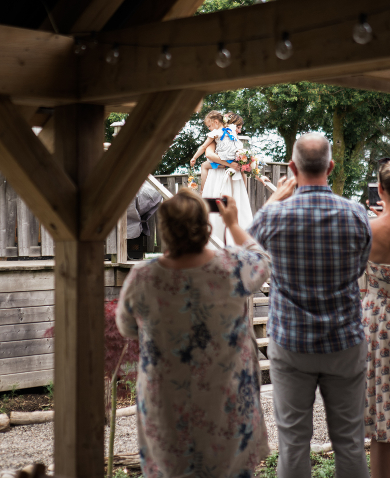 Their beautiful union was a small, intimate affair at 14th Coffee Company in Essex. The venue is beautiful, boasting a small cafe, a barn with a loft, an amazing house rental and gorgeous grounds and gardens. Nikki walked down the aisle in her beautiful blush gown and met Mark underneath a spray of amazing flowers. They wrote their own vows, which cause some tears, smiles and certainly some laughs. Even though their 3 year old daughter Georgia didn’t want to go down the aisle, there were some tender moments with her mom. Cocktails and appetizers were served in the garden before we headed up to the loft in the barn for dinner.