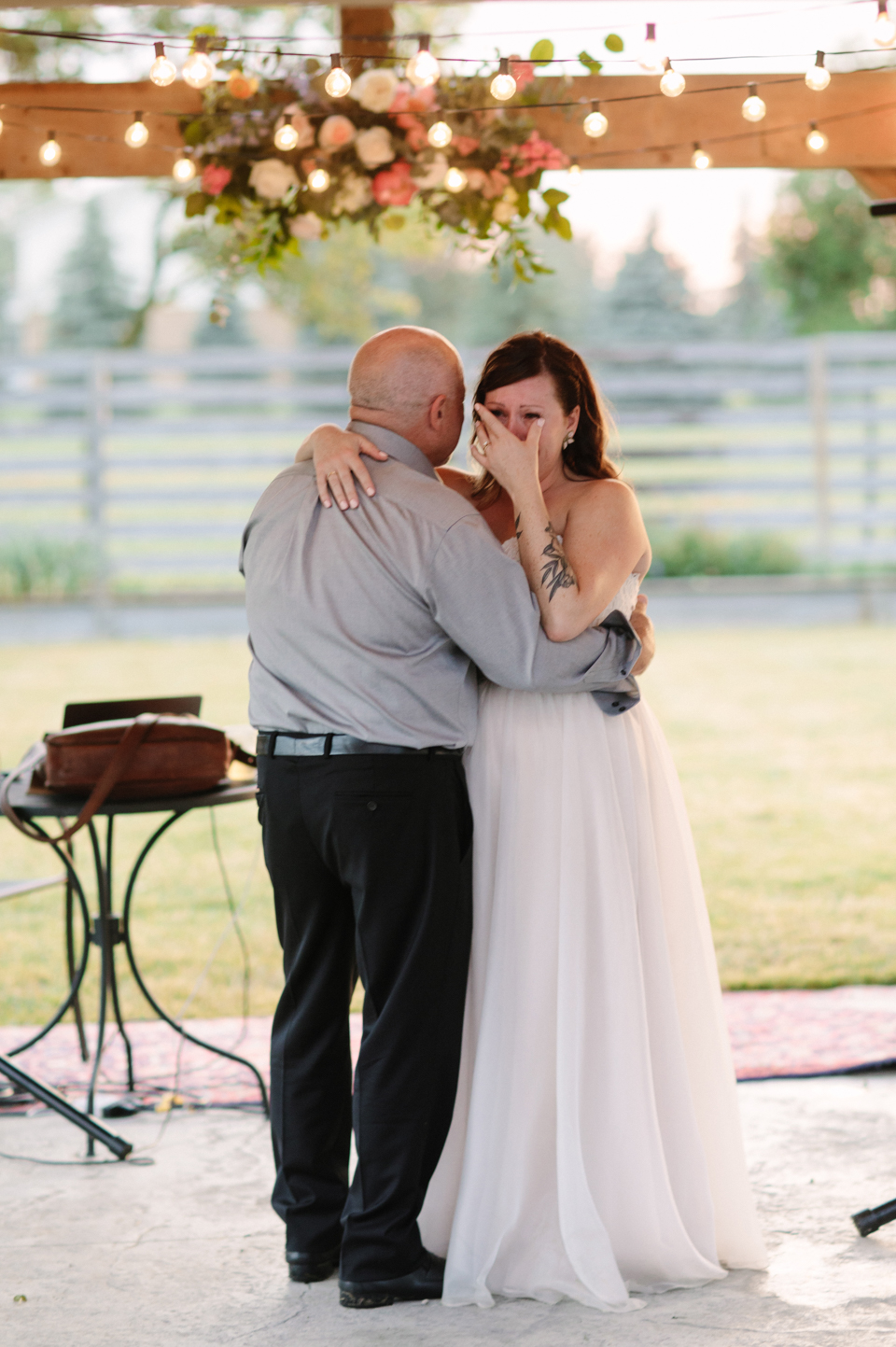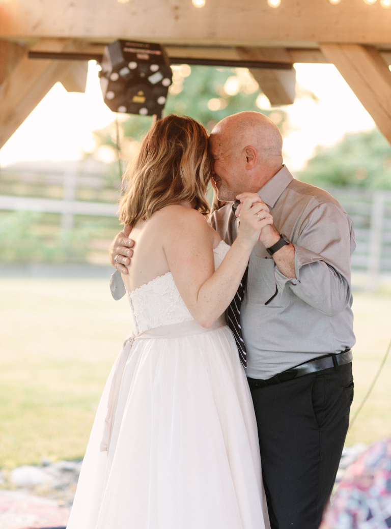 After dinner everyone headed back outside for a dance party under the stars. Nikki and Mark shared their first dance under the arbour as the sun set in the background over the property. It really could not have been much more perfect. Nikki and her daughter, Georgia shared a special dance with her dad as well.