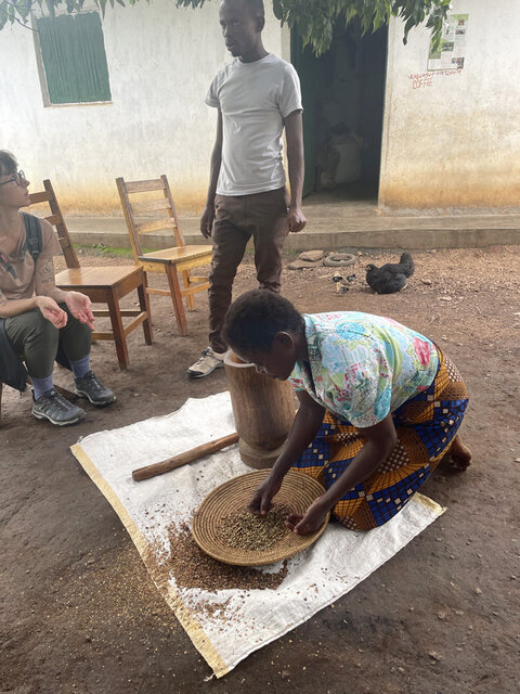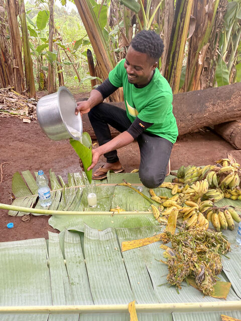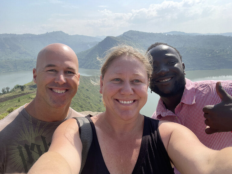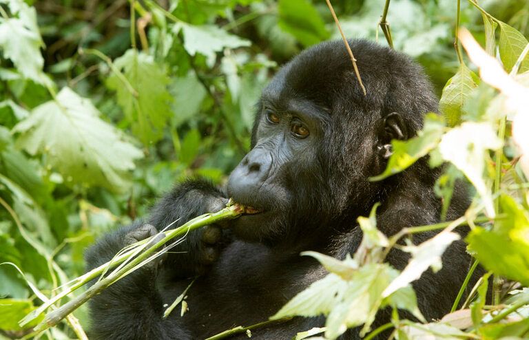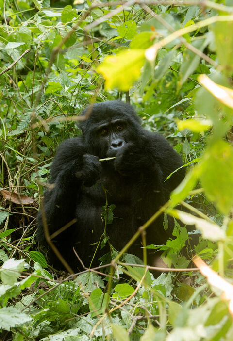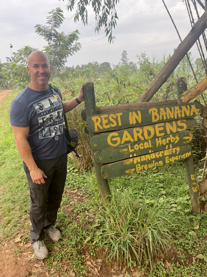 Our Chimpanzee trek was so fun. Our guide Florence, was amazing. She led us into the forest and along the way we ran into a group of baboons. We reached a large fig tree with a family of chimps up near the tree tops. While the had their lunch, we observed them from the ground and then they decided to make their way to the ground. They are very comfortable around people and as they came down we broke off into a smaller group to follow a small group along. They walk for a bit and then sit down and eat, allowing us to observe them and take photos. Amazing to see these animals in their natural habitats! I highly recommend doing both the chimp and gorilla treks, but they are very far apart from each other and require a travel day in between. After our gorilla trek we went on another nature walk near the forest and saw all kinds of monkeys and birds, including the Great Blue Toracco, also known as the lipstick bird. We also visited a local community and experienced how the make coffee, grinding it and roasting it by hand. Coffee is the biggest cash crop for Uganda. Also visited a woman’s group that did basket weaving and then the real treat was going to see the Banana Man. The Banana Man, is equivalent to a local brewery. He makes banana juice, that is used for banana beer, wine and gin. It was a very fun experience and not to mention the Banana man is the spitting image of Chris Rock. Also the banana beer is delicious and the gin will knock your socks off.