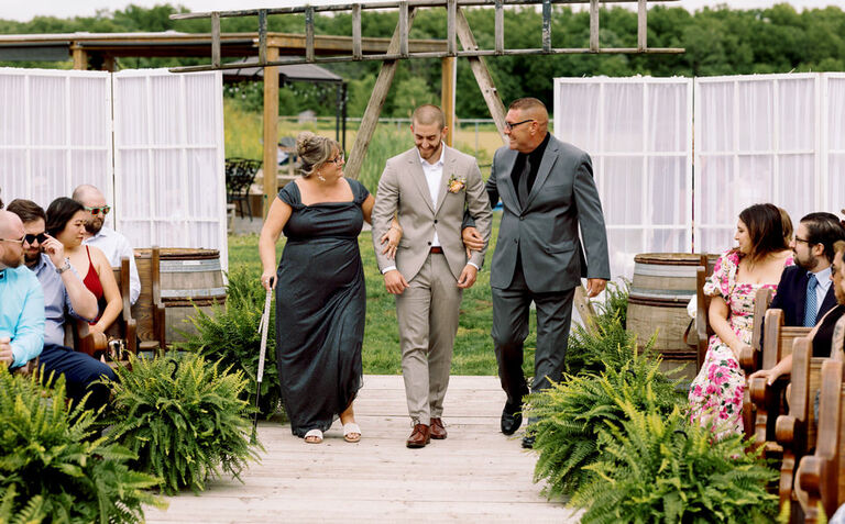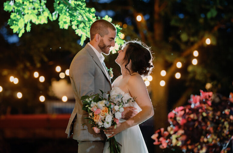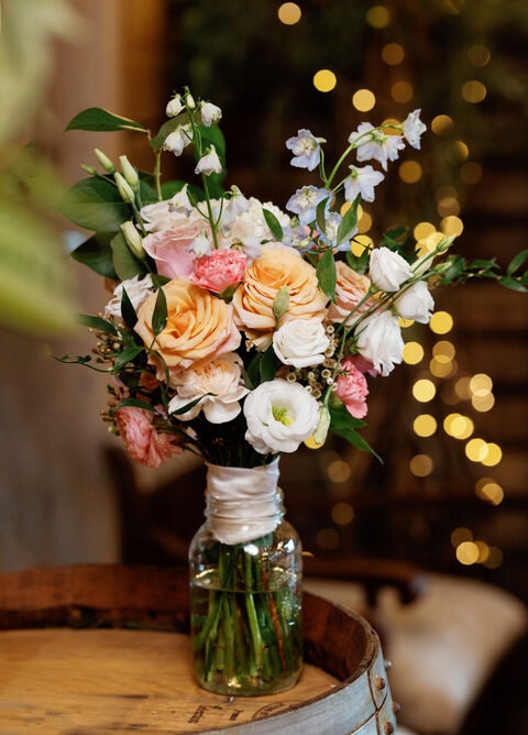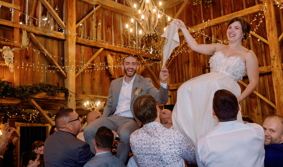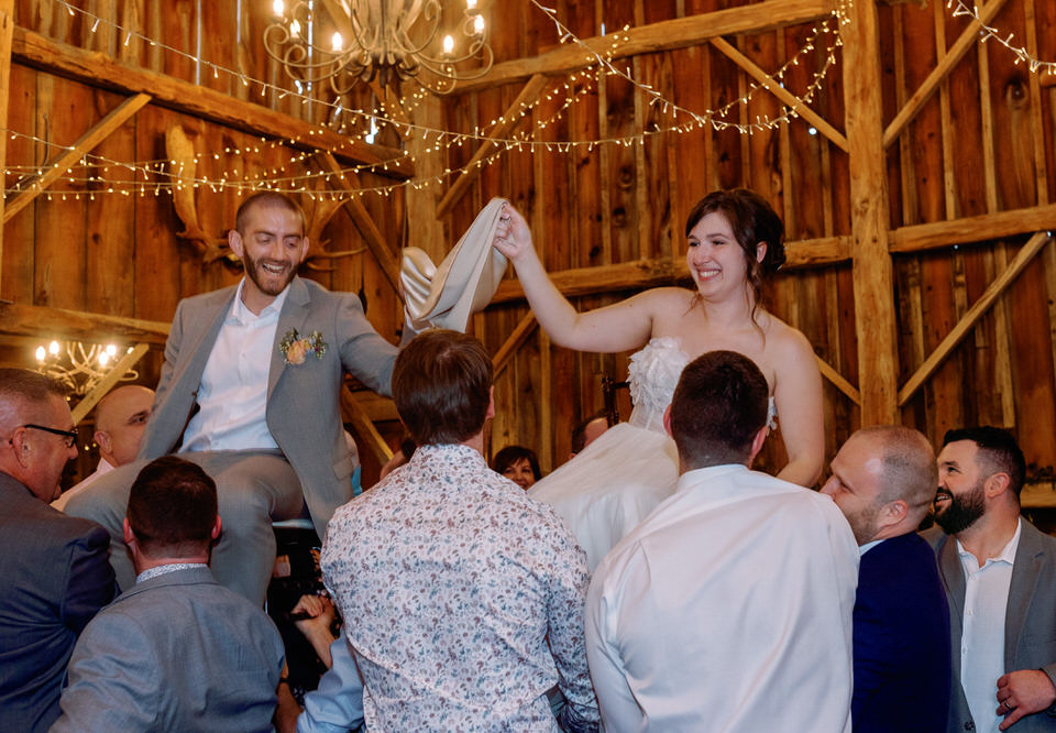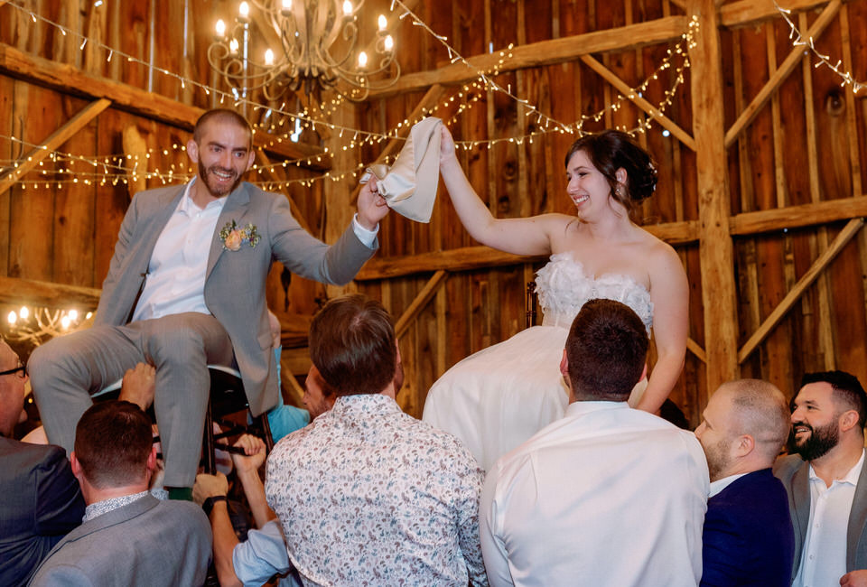 Rob and Becky said their vows in front of all their family and friends, followed by a cocktail hour on the grounds! The ceremony  was held outside in a gorgeous yard behind the barn surrounded by a pond and outdoor pews.  Of course the show was stolen a bit by all their nieces and nephews who did serve as their ring bearers and flower girls! A great job was done by all of them!  The reception was held in the barn, complete with beautiful twinkle lights, flowers and a rustic feel.  The bar was the ultimate set up complete with ready made slushy machines for daiquiris and margaritas, sangrias and lemonades ( the boozy kind of course).  The meal was a delicious buffet with more food than anyone could eat and dessert was cupcakes and a self serve ice cream machine! It was truly a perfect feast for this celebration!