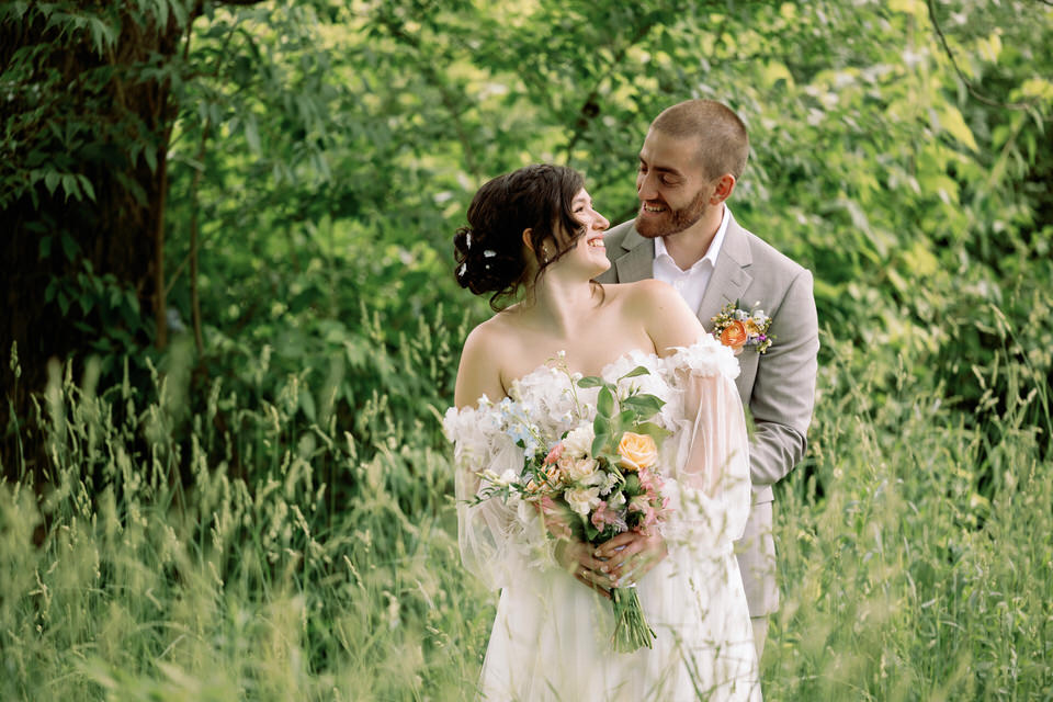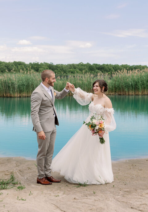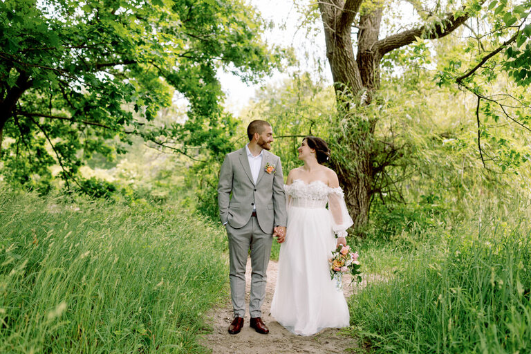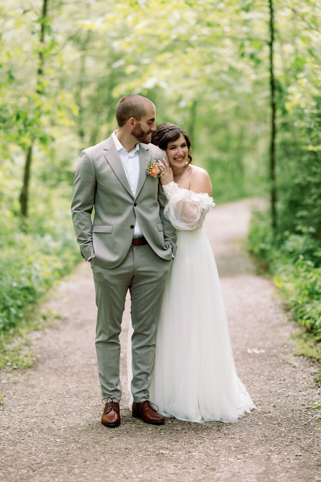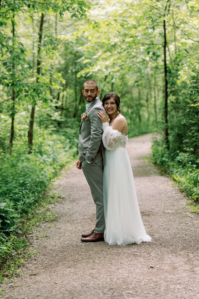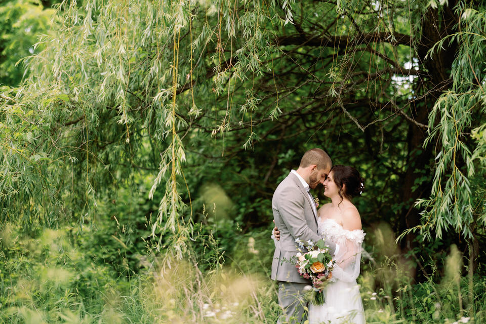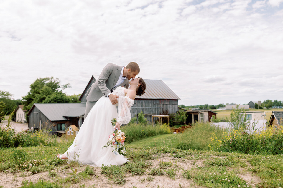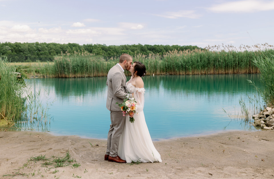 There is nothing I love more than a unique wedding and Becky and Robs wedding one of them! I first connected with Becky when she inquired about photography and in our discussions we both realized we were veterinary technicians, me of course retired from that profession but still none the less a very cool thing to have in common.  She told me that there were having a barn wedding and I immediately wanted to see pics and was blown away by the photos she showed me of the venue!  When I photographed Rob and Becky for their engagement photos, it was very easily to see the wonderful connection these two have with one another and that they truly have a whole lot of fun together.  The day of the wedding was a gorgeous sunny warm day and we decided to do a first look at Ojibway.  They had decided to not have a bridal party so it was an intimate, lovely time photographing them before the big walk down the aisle. After our time at Ojibway we made our way to this beautiful private venue.