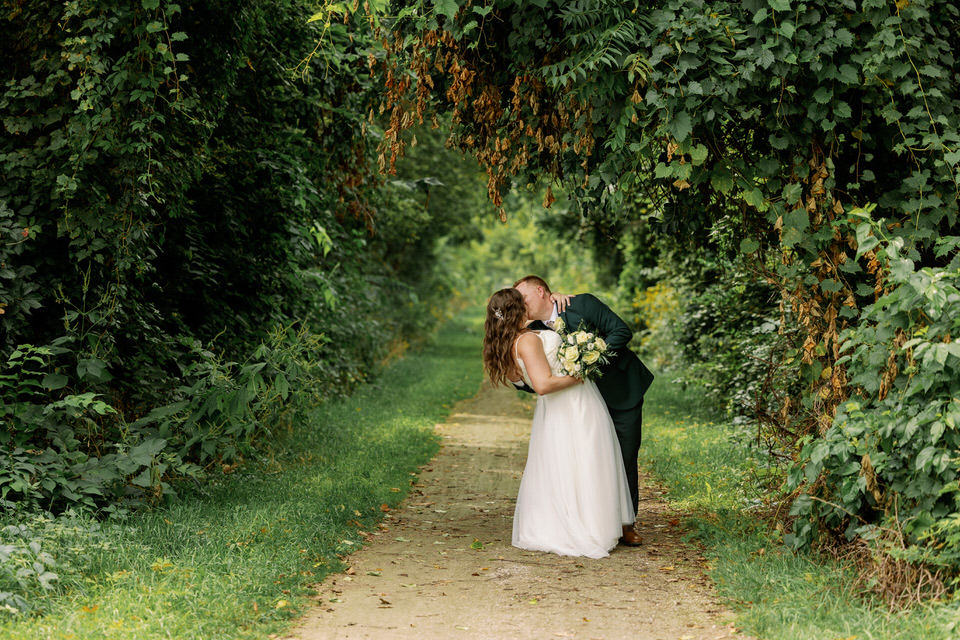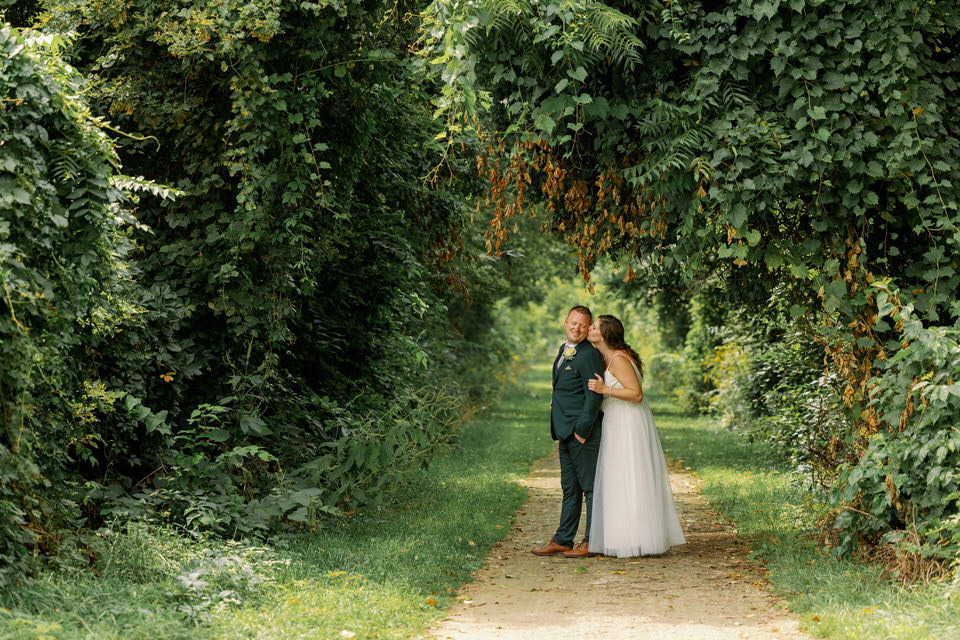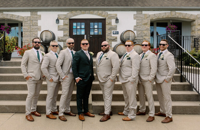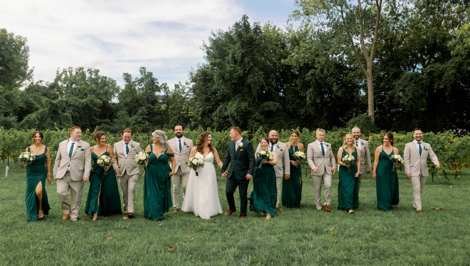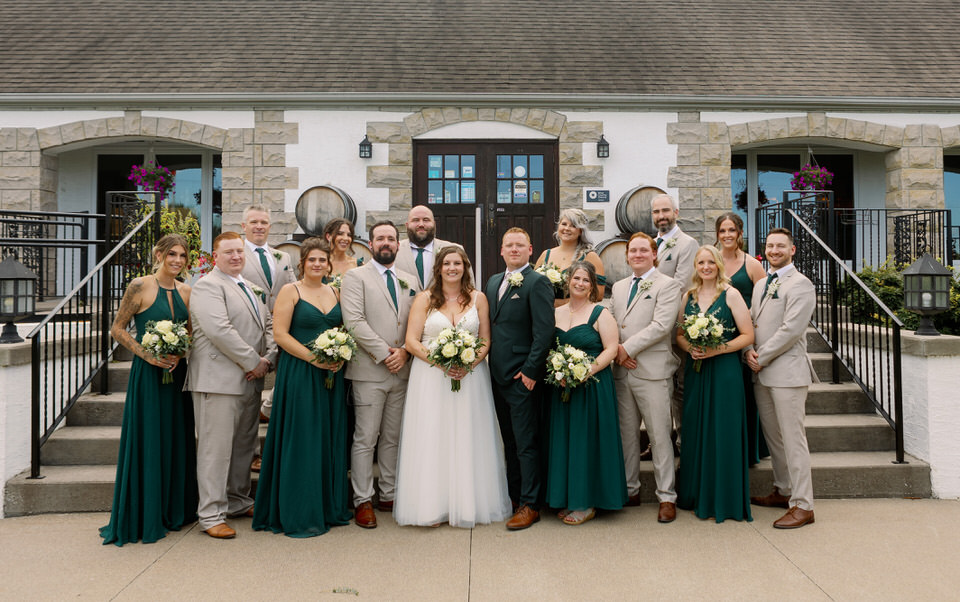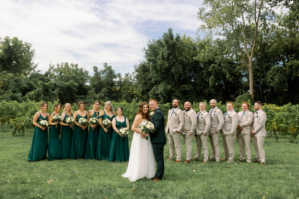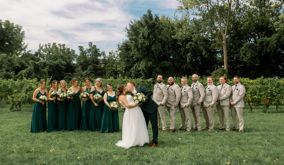As a Windsor wedding photographer, my biggest hope when I agree to shoot a wedding is to get a fun, down to earth couple that I can connect with and Melanie and Wes were absolutely that couple! First of all Mel is a veterinary technician and anyone who knows me I spent many years working as a tech in the vet world, so we definitely bonded over our shared love of animals. When we shot their engagement session they were just so easy going and fun, and always laughing together. Along with a super fun group of friends their day was nonetheless than perfect, despite a couple hiccups along the way! I have never had a bride go awol in a corn field until this day, but when Mel and Wes’s kitty decided to go hide in the corn field next to their house of course it was all hands on deck to find him. Gladly he did return home later that evening safe and sound! The creative session was done on the ground of Pelee Island Winery which really is a great location for wedding photos.