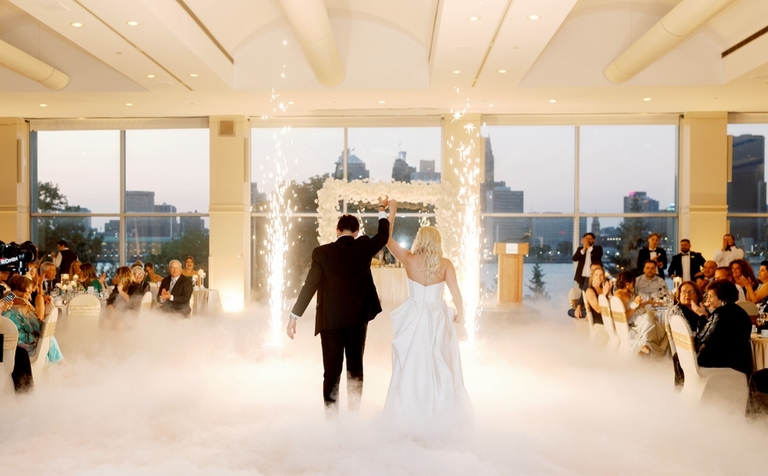 The highlight of the evening, however, was the bride and groom’s first dance. As they swayed to the music, the soft glow of sparkling indoor fireworks cascaded around them, creating a truly magical moment that will be etched in their memories forever.