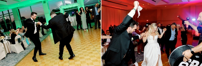 But what really set the tone for the evening was the entrance of the bride and groom. With the sounds of traditional Lebanese dabke music filling the room, Ali and Lucas made their grand entrance, leading their loved ones in a celebratory circle. It was an electrifying moment—full of joy, excitement, and pure energy—as everyone came together to mark the beginning of their life as a married couple.
