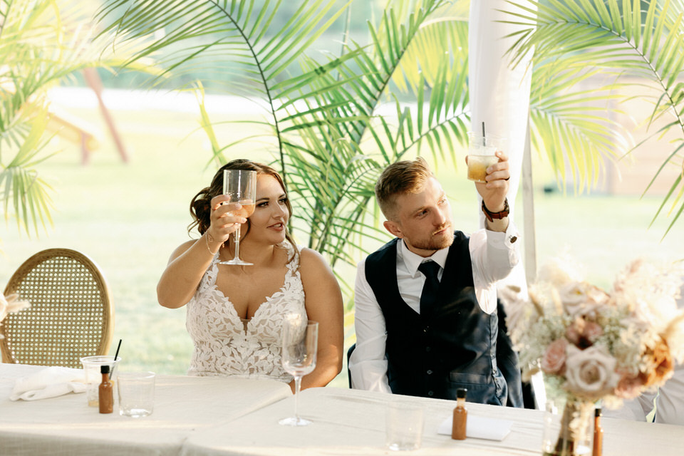 The ceremony was held in Erics families backyard and was just simply gorgeous.  The ceremony was a little extra special as they had a friend officiate, which always adds an extra personal touch.   The reception was held at Jessica’s family home and it was stunning.  On the water, a beautiful evening and the personal touches that the family all came together to do set the scene for a perfect evening! There is also something about an outdoor reception that makes it all a little more magical.  The rustic, boho theme was perfect for this setting.  Speeches were said, dances were danced and then the party started.  A wedding photographer always hopes for a great dance floor because it can show the atmosphere of the evening, but also these are usually where true personalities and friendships come to light and that is exactly what happened.  Overall it was a fantastic day.  There are some couples that I meet and I just know they are going to have a beautiful life and Jessica and Eric are one of those couples.  I could see the genuine love and affection they have for each other and surrounded by the support of their very loving and kind families and friends, there is nothing but a bright future ahead,  Thanks for allowing us to capture this perfect day and both me and Nikki wish you the most amazing life together!