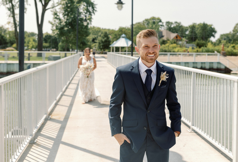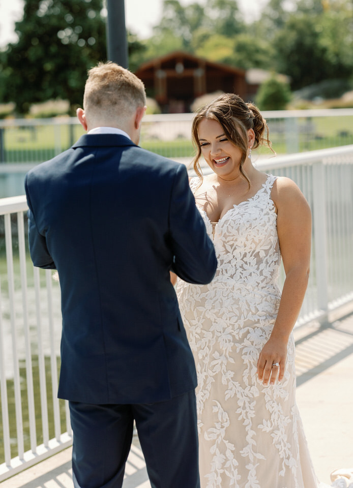 I’ve been aWindsor wedding photographer now going on 15 years, and I think some of my favourite weddings ever are the ones that are held in backyards and on private property! There is just something personal and intimate about them that makes them very special.  When I met with Jessica and Eric and they told me they were having their wedding at their families homes I was very excited to see the outcome and to say I was blown away is an understatement.  It was a beautiful day to start and the girls spent the morning at the brides going getting ready and we met the guys at the riverfront for a first look.  We did the first look, which was filled with heartfelt moments and some comical moments.  Erics reaction to seeing Jess was perfect, as you will see below.  The genuine love and excitement in his face is prevalent! Their creative session was fun and easy thanks to them being just a great couple and their bridal party which provided lots of laughs and fun!