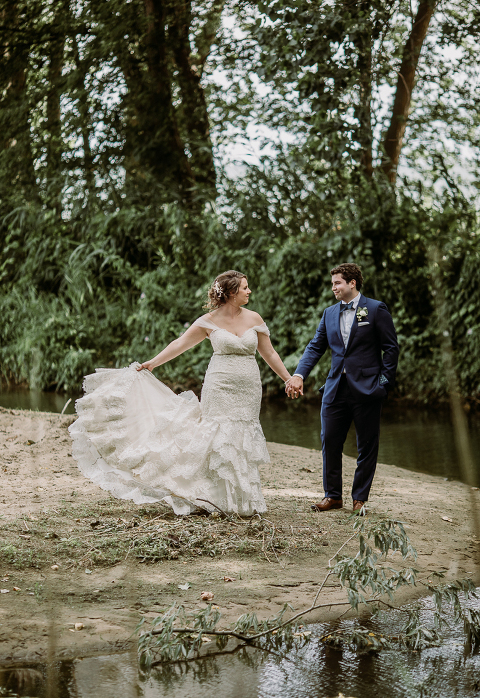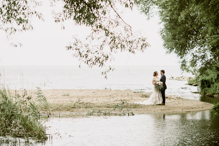 After the ceremony, their adorable dog Paddington joined us for a couple pictures and then we headed out for the creative portion of the day. We were lucky enough to have Alycia’s best friend Stephanie, to loan us her amazing property and barn for the wedding pictures. A beautiful over 100 year old barn made for the perfect setting for their photos. A big thanks to Steph and Mike for allowing us to once again into their home and property! We also headed over to Lakeview Park in Kingsville for a second location. The beach and the cobblestone bridge always makes for a great shooting location.