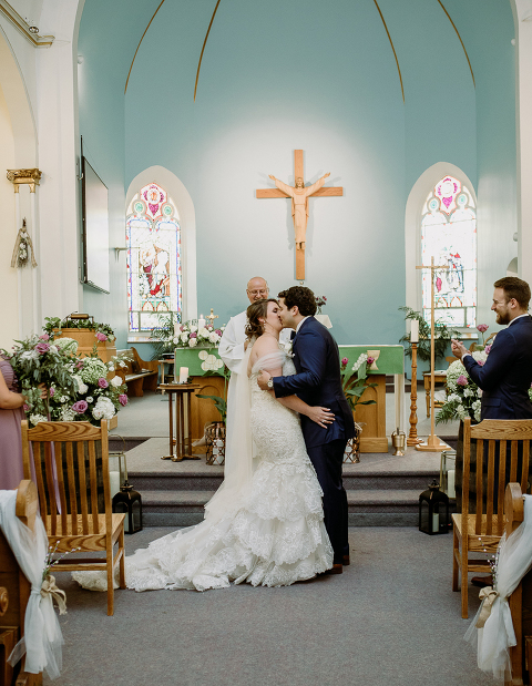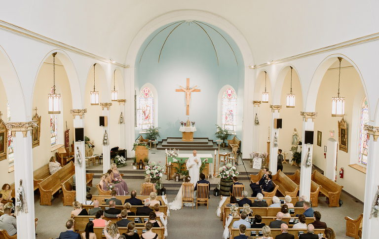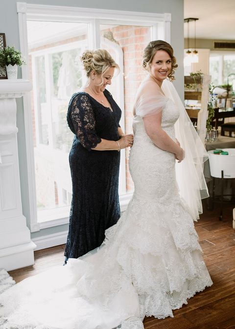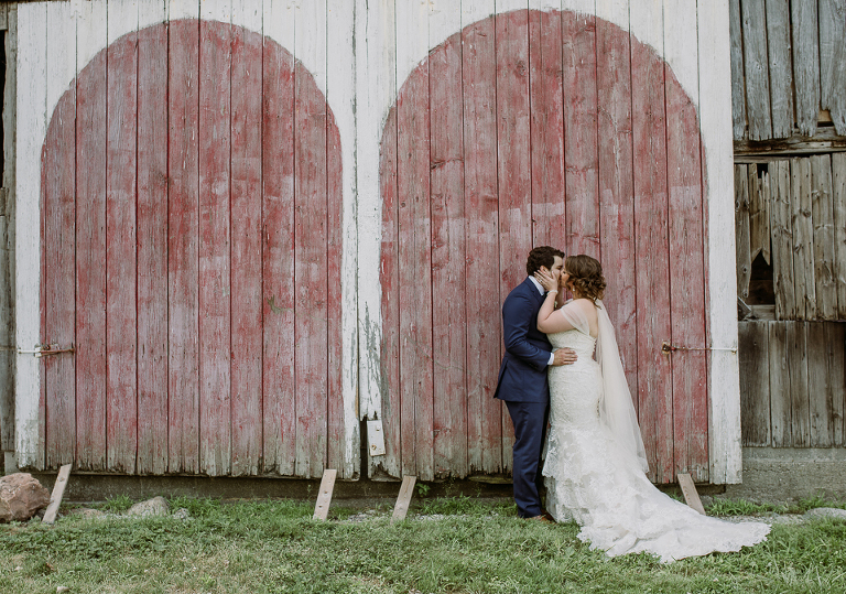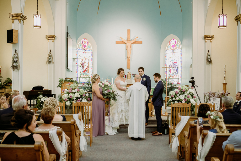 Alycia and Adam had an absolutely beautiful wedding this past summer. It was the perfect combination of elegance and rustic flair. I first met Alycia when she was a bridesmaid for another beautiful bride of ours Stephanie, who was one of Alycia’s bridesmaids. After getting engaged in the amazing city of Paris France, she contacted me about shooting their wedding and I was more than excited to do so. The morning was spent with the girls at Alycia’s parents beautiful home for all the getting ready moments. Alycia’s gown from It’s your Day in Lasalle, was a gorgeous lace gown with a layered ruffled skirt and dropped tulle sleeves, perfect for the barn photos we would shoot later on that day. My second, Nicole, spent the morning with all the guys and captured some great moments of the guys getting ready and the super amazing gift Alycia put together for Adam. They married in St John Evangelist Church in Woodslee in a beautiful ceremony in front of all their family and friends. One of my favourite moments of a wedding ceremony is when the groom sees his bride for the first time and I can say Adam’s face absolutley lit up as soon as the doors opened.