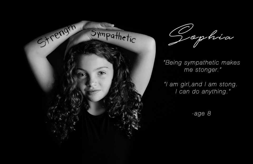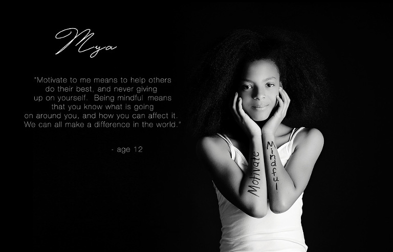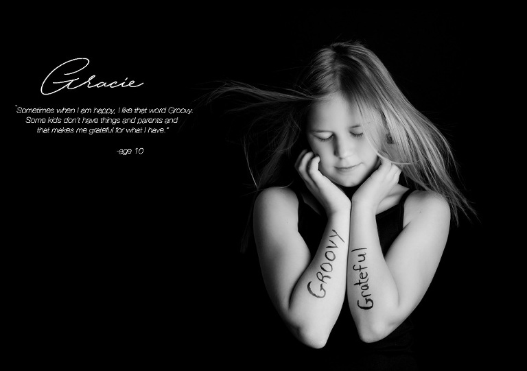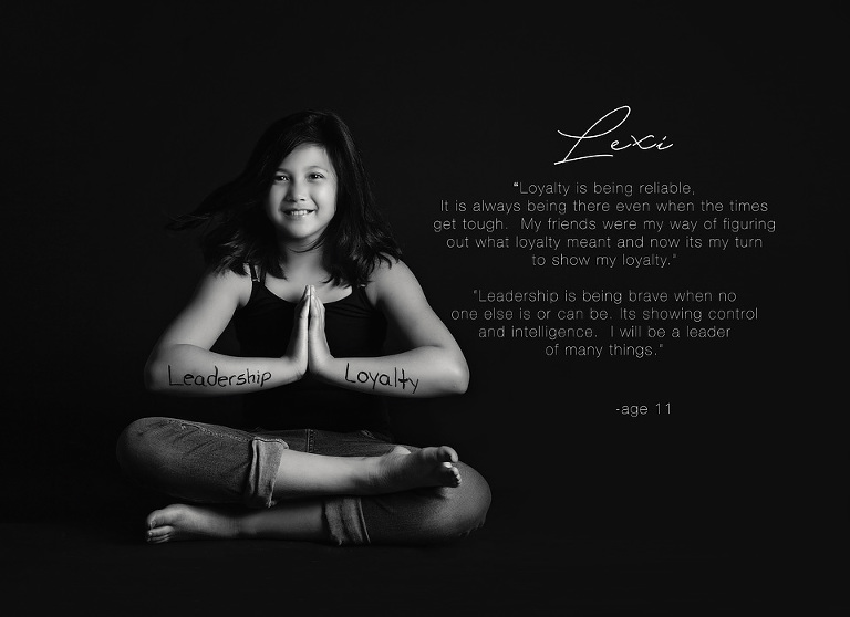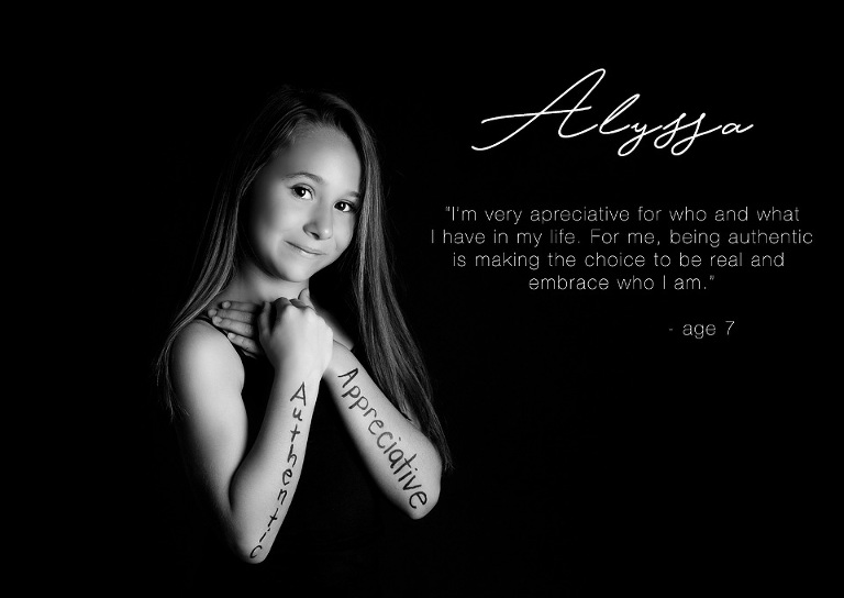 The Positive Artistry Project, has children between the ages of 7-14, come into the studio and we give them a letter ( usually the first letter of their name) and select two words that are positive, mean something to them and inspire others.   They then wear their words for the world to see and we photograph them.  I then decided to ask each kid why they picked those words or what it meant to them.  At first I just thought it was going to be a fun thing to do.  But then I saw kids, sitting down with their parents, and discussing these words and what it meant to them or why it was important.  It is truly a remarkable thing.  It brings parents and kids together.  I also see these kids being a little shy at the begining of the shoot to bursting with confidence, and positivity at the end of it.  The real impact of this project for me came after the shoots though.  Over half of the parents of the kids involved sent me a message telling how much it meant to their kids to do this and how much they needed it.  From kids coming home and saying they aren’t as pretty as the other girls, or that they have been struggling with their identity or they needed this because “kids can be mean”.  My goal was to have these kids inspire the world around them, I didn’t think about how much they would inspire themselves.  I am so incredibly proud of each and every one of them