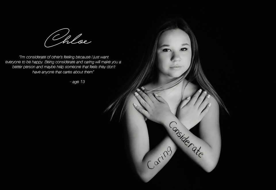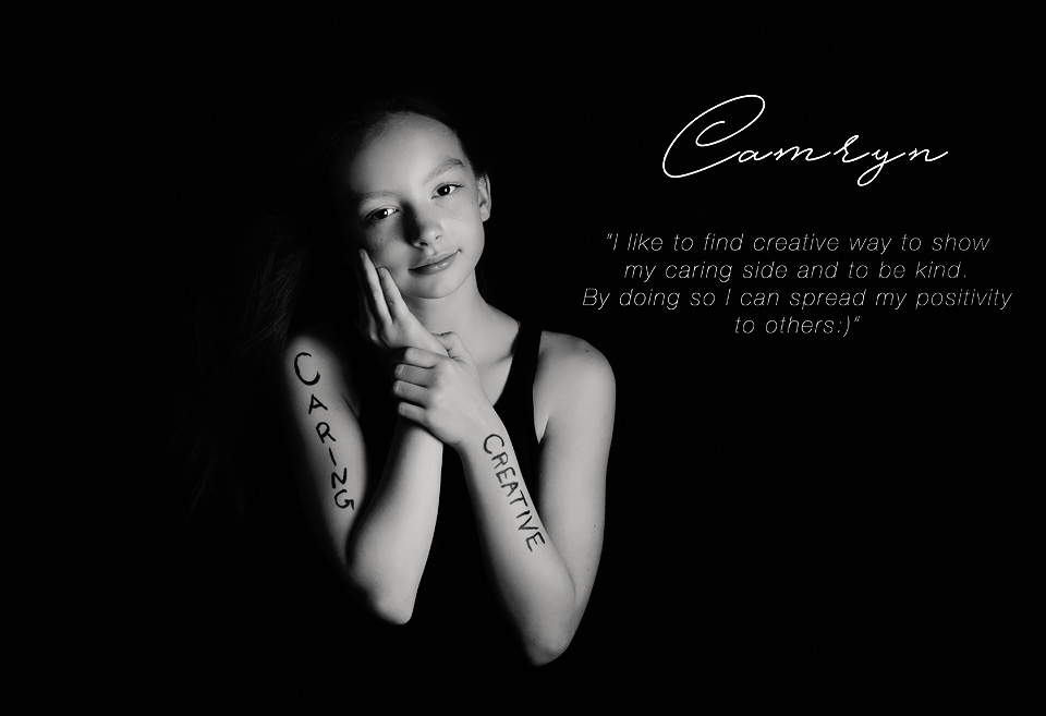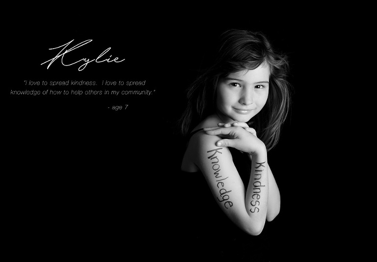 As a creative person, our minds are always spinning, trying to come up with something new and inspiring.  I also believe in charity and supporting those in need and research for those in need.  So I have made myself a promise to dedicate myself to a project a year that is something meaningful,, near to my heart and in turn can do some good in the world.  Last year we sold a calendar of newborn babies and raised money for cancer research.  This year I decided to take a different approach.  I really wanted to work with kids between the ages of 7-14.  I photograph a lot of babies, a lot of weddings and a lot of families.  For some reason it seems people stop photographing their children after they get out of the toddler phase?  Why?  Is it life just gets too busy?  Is it that they don’t change as quickly?  Well I hope this project inspires parents to photograph their kids at this age because it is a pretty awesome time in a kids life.  I watched a few netflix documentaries this year including Bully, Just Like Her and Audrie and Daisy, and 13 Reasons Why.  All of these documentaries are about struggles younger kids have and the consequences of some of the difficult things kids face these days.  It made me so sad.  I wanted to do something inspiring and positive.  I wanted to give kids a chance to really think about putting positivity into the world and online.  I wanted to show them that a simple photograph and quote can really make an impact and they all absolutely exceeded my expectations.