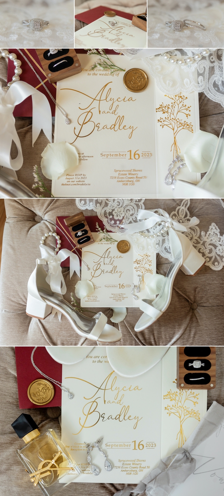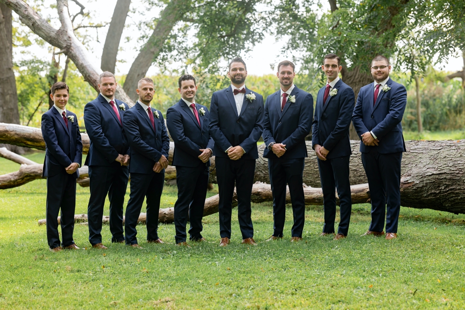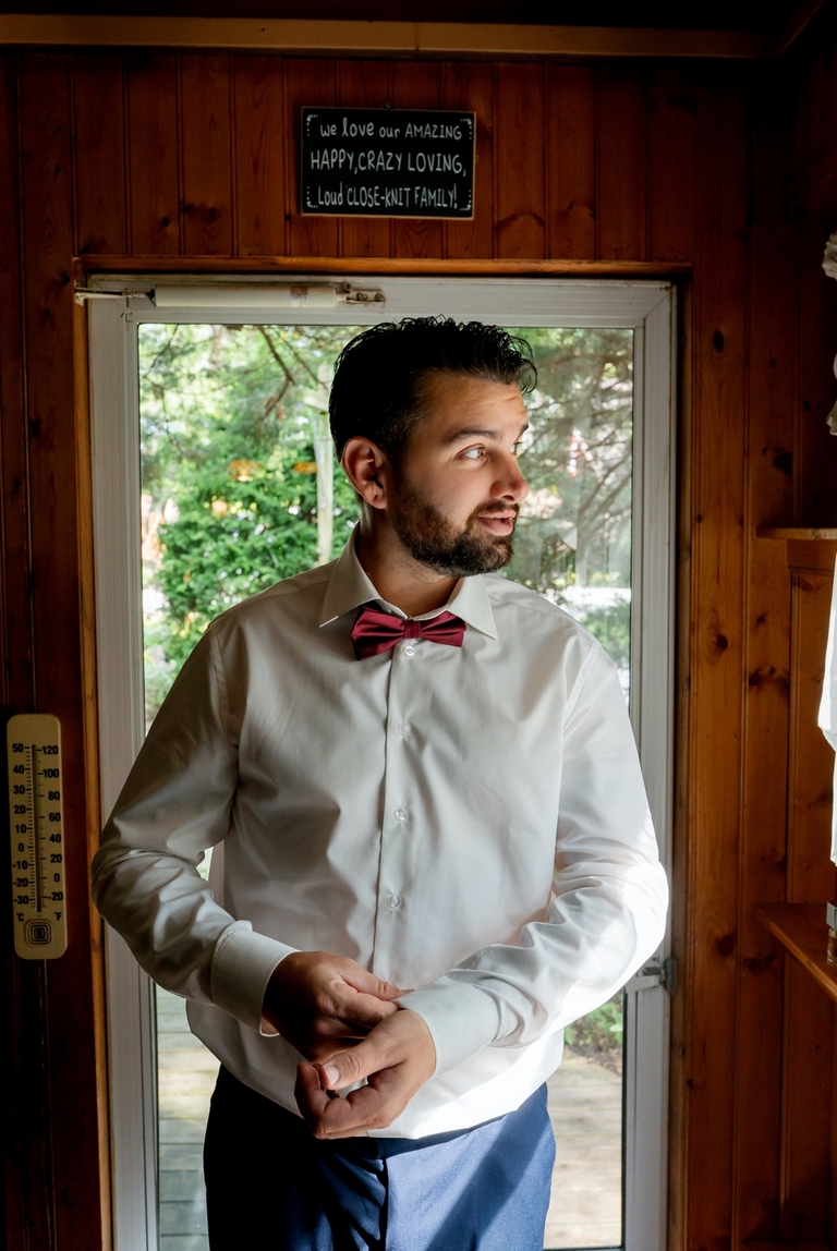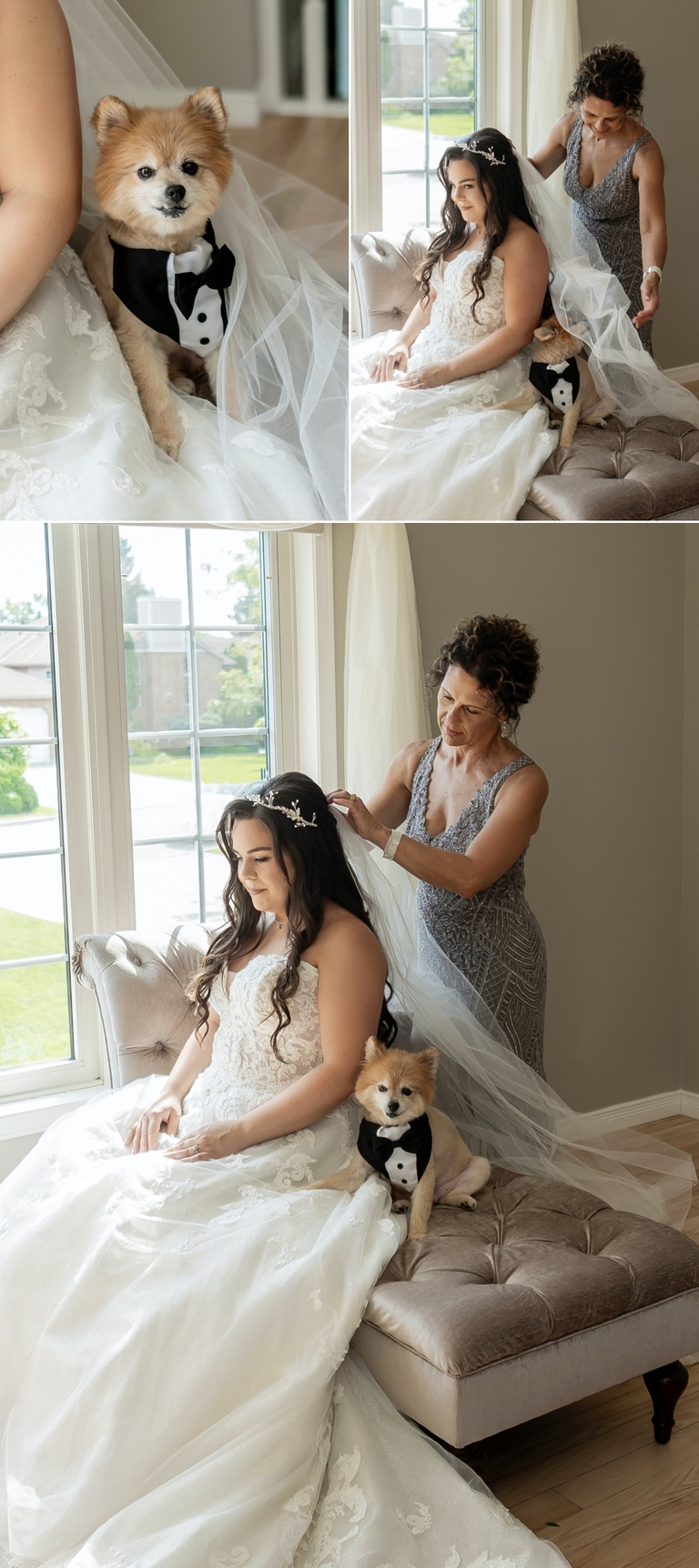 Alycia and Brad’s wedding day was a beautiful September day filled with lots of personal touches. The girls spent the morning getting ready at Alycia’s parents home, complete with the sweetest first look with her dad. Nothing makes a wedding morning more complete than the family pup dressed for the occasion ( scroll down to see the finest little gentleman). They decided to do a first look right across the street from Brad’s parents house in front of a tiny little chapel that Brad’s parents married in decades before. It was a super special moment for the whole family. With a quick stop at a coffee shop in Kingsville for a pic, we then arrived at Sprucewood for the creative session. One of my favourite moments of the day was when Alycia walked down the aisle to the same song Brads mom walked down the aisle to ( scroll to see her reaction lol ). Vows were exchanged, rings found their permanent place and the first kiss as husband and wife was given! The reception followed with a great meal, an amazing first dance and heartfelt speeches. The evening was topped off with a beautiful sparkler exit and then a great dance party. Its always a pleasure to be invited into someones life on the most important day of their life. I realize what a blessing and privilege that is every time I photograph a wedding. The start of a beautiful marriage begins at the altar, but the magic of being with that perfect partner is something that continues for decades to come. I wish them the happiest of days together, the most joyous experiences together and a lifetime of special moments like this fabulous September day.