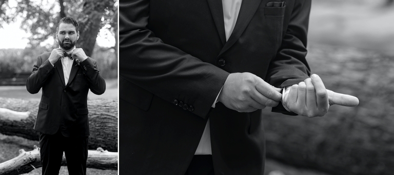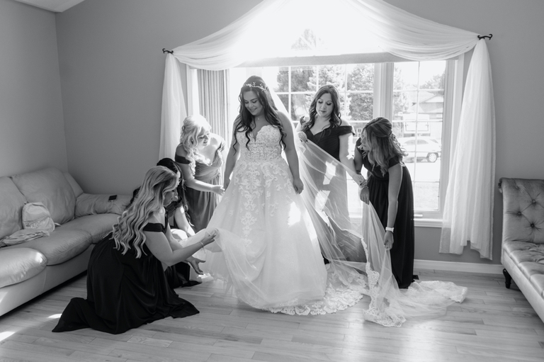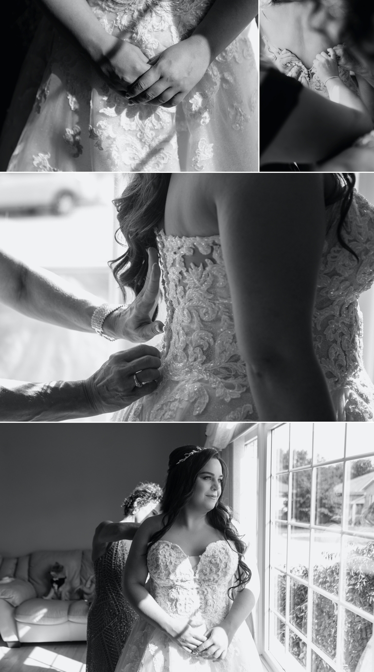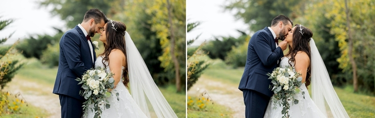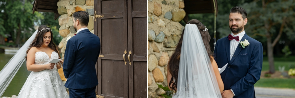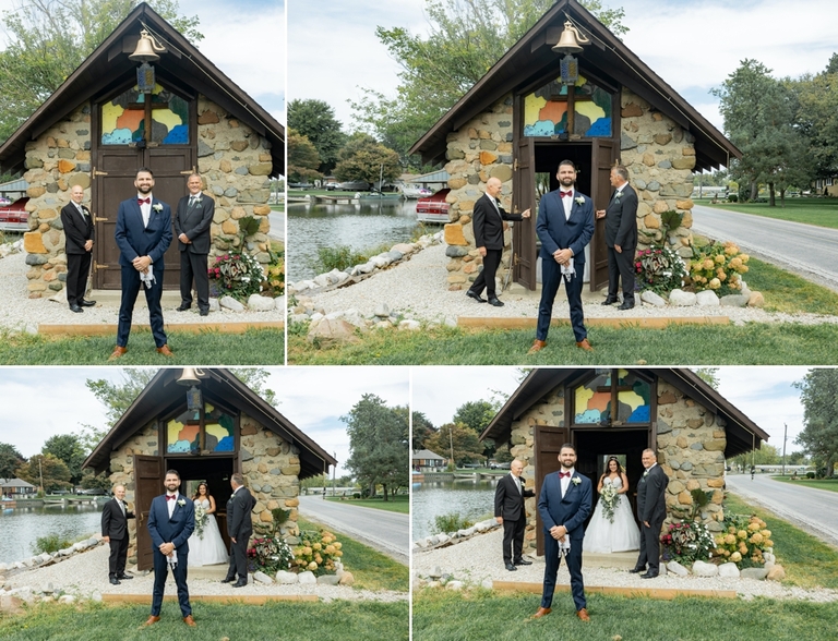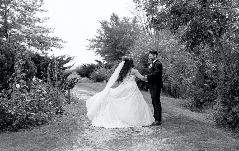 Alycia and Brad’s wedding day was a beautiful September day filled with lots of personal touches. The girls spent the morning getting ready at Alycia’s parents home, complete with the sweetest first look with her dad. Nothing makes a wedding morning more complete than the family pup dressed for the occasion ( scroll down to see the finest little gentleman). They decided to do a first look right across the street from Brad’s parents house in front of a tiny little chapel that Brad’s parents married in decades before. It was a super special moment for the whole family. With a quick stop at a coffee shop in Kingsville for a pic, we then arrived at Sprucewood for the creative session. One of my favourite moments of the day was when Alycia walked down the aisle to the same song Brads mom walked down the aisle to ( scroll to see her reaction lol ). Vows were exchanged, rings found their permanent place and the first kiss as husband and wife was given! The reception followed with a great meal, an amazing first dance and heartfelt speeches. The evening was topped off with a beautiful sparkler exit and then a great dance party. Its always a pleasure to be invited into someones life on the most important day of their life. I realize what a blessing and privilege that is every time I photograph a wedding. The start of a beautiful marriage begins at the altar, but the magic of being with that perfect partner is something that continues for decades to come. I wish them the happiest of days together, the most joyous experiences together and a lifetime of special moments like this fabulous September day.