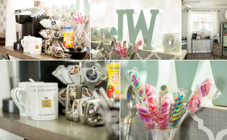 Our own version of craft services!lol We have coffee, tea, juice and even wine available for our clients and some yummy snacks for the kids….ok lets just call them bribes.