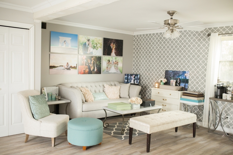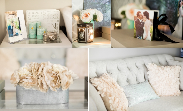 I love details and I looked for very specific things to put in the studio. The couch was a must and I waited a whole year to get it! I love the small accents of tiffany blue thrown in
