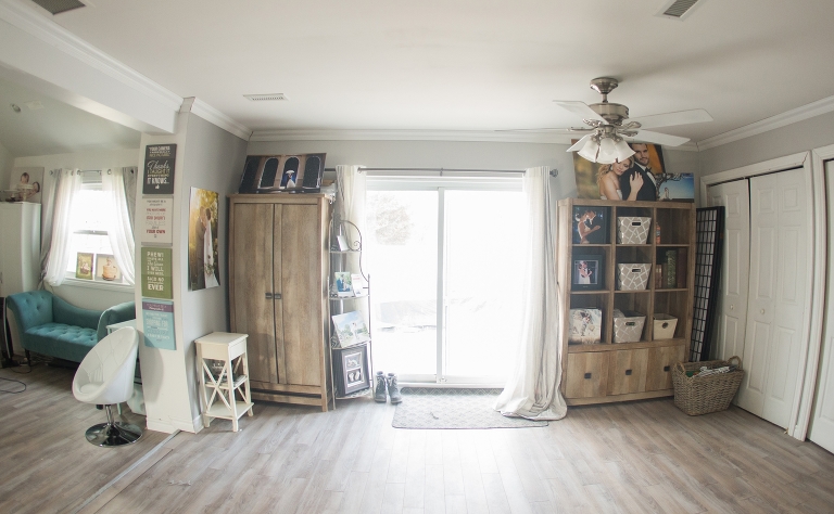 The newest addition to our studio. Done completely my husband. He is an amazing guy. I wanted a big shooting space with a nice high ceiling. The natural light is gorgeous in here as well!