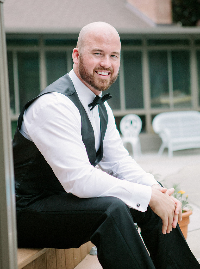 The ceremony was held outside at Essex Gold and Country Club . A beautiful arbor was built and adorned with florals for them to say their wedding vows under. Both Kyle and Lauren said the best part of the ceremony was seeing each other for the first time. I think a close second would be their adorable dog Porky also making his way down the aisle as an honorary groomsmen. As the ceremony ended we used the beautiful grounds of Essex Golf and Club for their creative session. Lauren and Kyle were naturals in front of the camera!