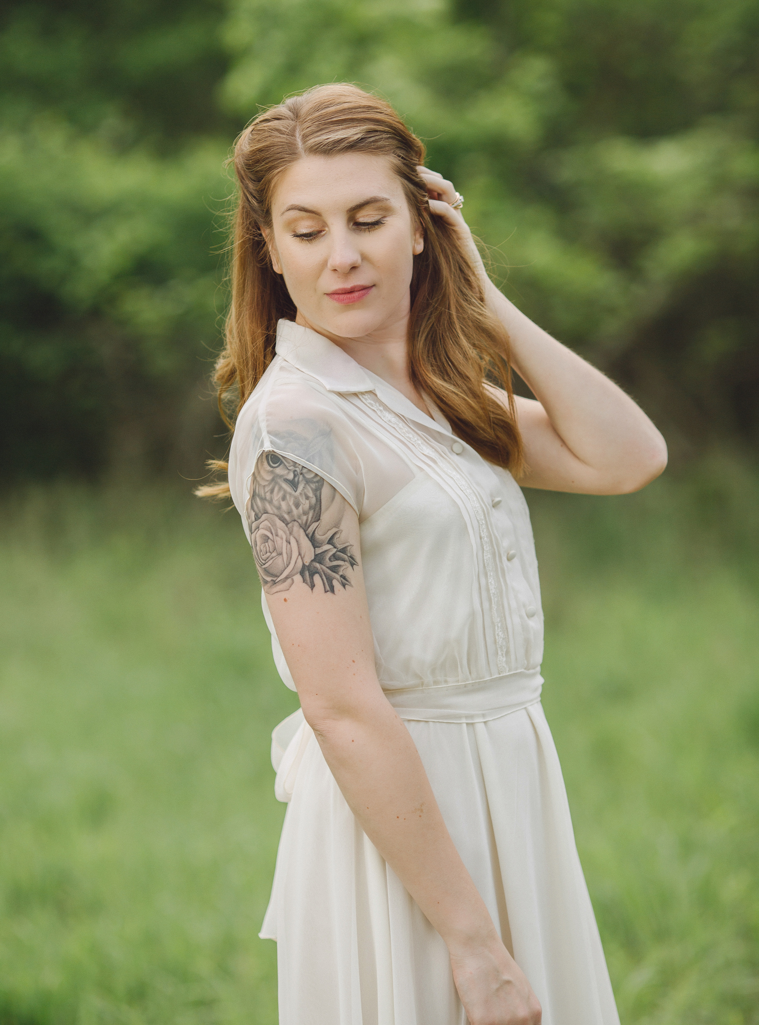 Lauren wore a gorgeous vintage dress that belonged to her mother, and some special significance to her. I thought it was a very cool idea to wear the dress and it suited her so perfectly. Right down to the way she styled her hair, her shoes and even her tattoos made it all so perfect!