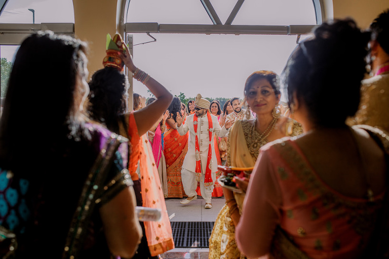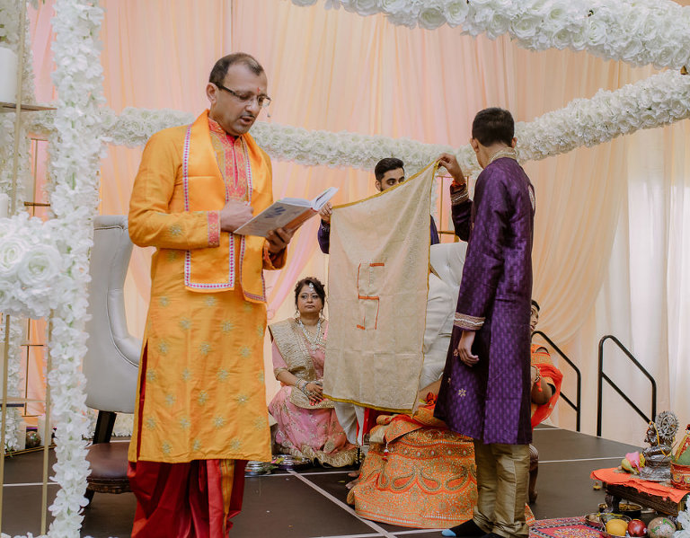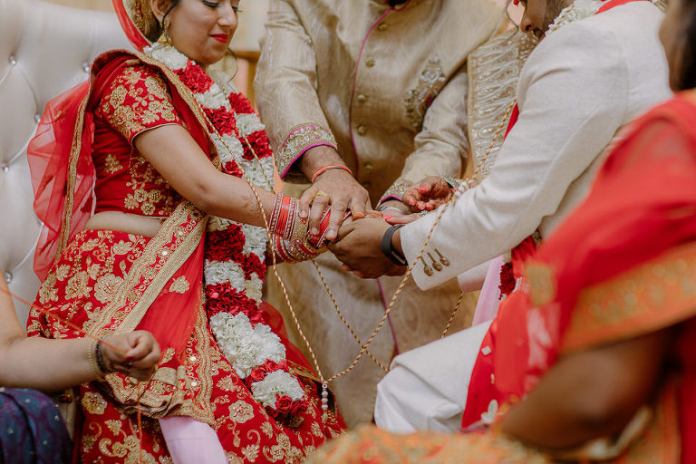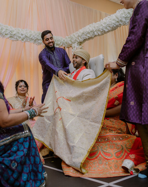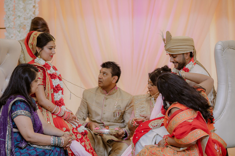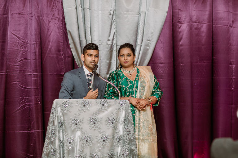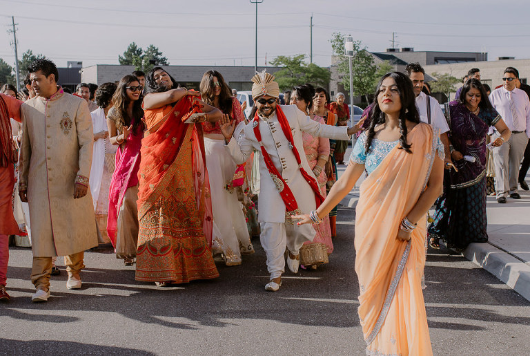 Nothing makes me happier that bright colours, lots of smiles, dancing, family that loves one another and an amazing celebration. This is exactly what Meera and Rishabh’s wedding day was all about! When I first met them, I noticed their smiles first. They were so happy and excited to be getting married. Their amazing day started very early at around 6 am at Meera’s parents house for hair and makeup. The ceremony was held at the Hindu Temple and started with an amazing welcoming of the groom through the parking lot to the temple where a small ceremony was held to let the groom enter the temple. There was dancing and drums and so many smiles. There is nothing more special as to when a bride enters a ceremony and this was no different. When the drape held up between the bride and groom dropped, the looks of anticipation, turned to looks of love, excitement and adoration. The ceremony was followed by a wonderful lunch and then we proceeded to the creative portion of the day. We hopped over to the Gnatchio Trail for the photos in the ceremonial outfits. A quick outfit change to their reception outfits and we headed downtown to Maiden Lane for some editorial shots. The reception was held at the Serbian Center and the hall was decorated in a gorgeous purple with an amazing cocktail hour , followed by dinner. The speeches were heartfelt and funny and then the dj opened up the dancefloor for an absolutely amazing dance party! It was an amazing day and evening and we wish them the very best for their life together
