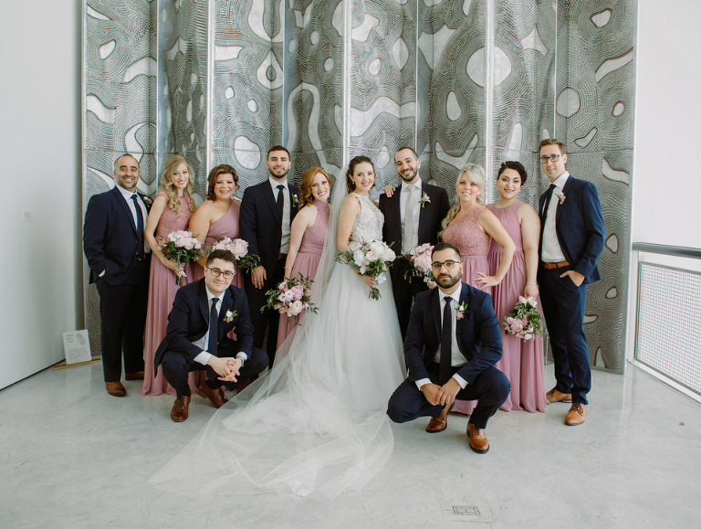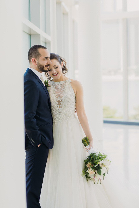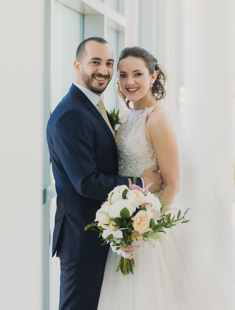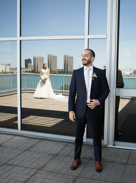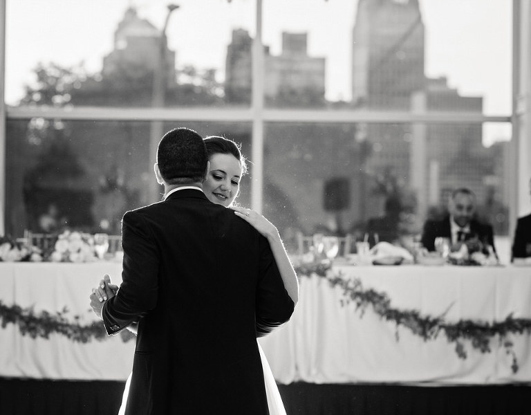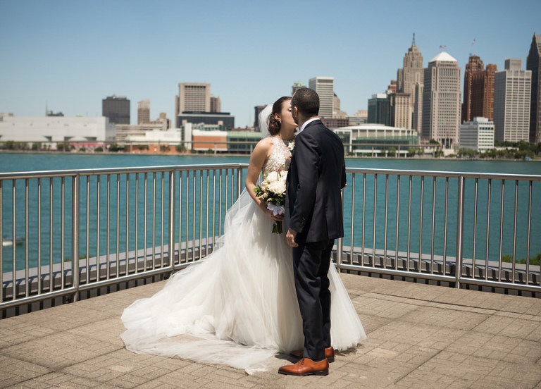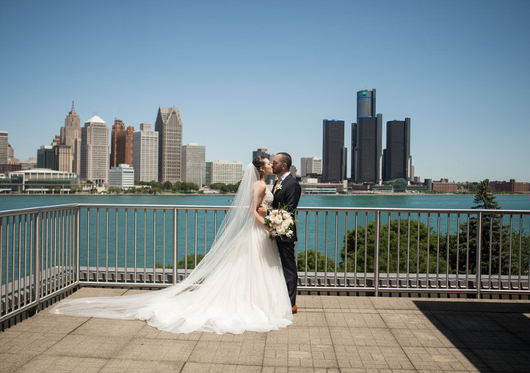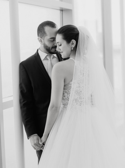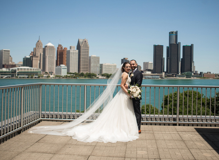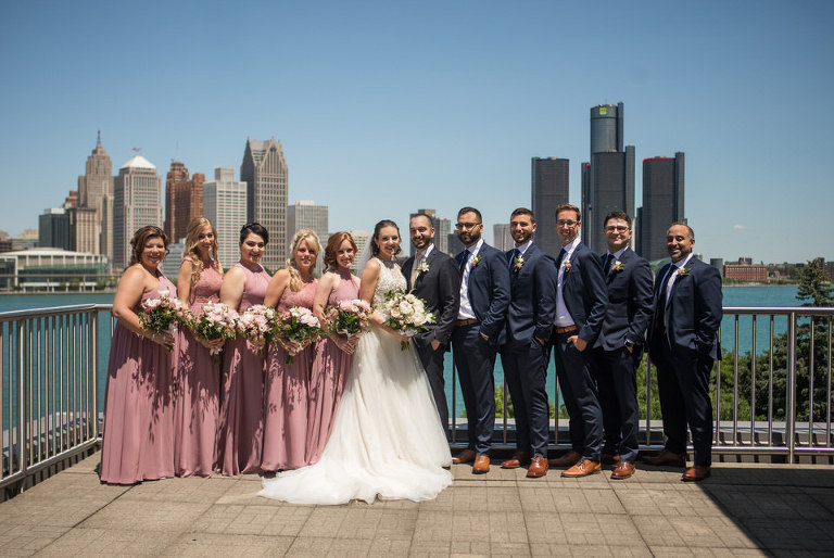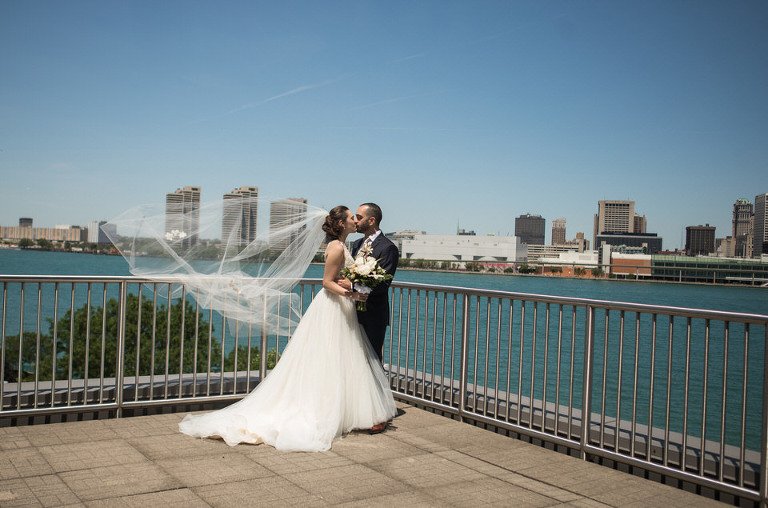As a Windsor wedding photographer we often get to photograph weddings of people we know and once in awhile a very special wedding comes along. Vanessa and Naseem’s day was one of those. I was honoured to be able to shoot one of my best friend’s sister’s wedding this past summer. The morning was very calm and relaxed as all the girls got ready. Vanessa is a very calm, gentle person to begin with so I knew she would be the essence of an elegant bride. Her gorgeous gown was stunning, sporting a deep illusion neck line. One of my favourite moments of the morning was Vanessa showing her Nona that she has sewed flowers and ribbons from her grandmothers dress into her dress and veil. It was such a touching moment to be a part of! They did their first look at the Art Gallery of Windsor overlooking the skyline of Detroit, where they live! It was such a great moment when Naseem saw his bride for the first time. We did the creative session at the Art Gallery and Dieppe Park and then headed over to the church. The ceremony was a traditional catholic ceremony , and the couple exchanged the vows in front of all of their families and friends. The reception was held at the St Clair Center for the Arts in the gorgeous skyline room. The entrance into the reception was done in a traditional Caldean fashion with drummers getting the part started! The couple danced over to the cake to cut it for the first time as husband and wife! The evening was filled with dancing, laughing, great food and drinks and a fantastic time was had by all. We wish Vanessa and Naseem the very best in all their years to come!