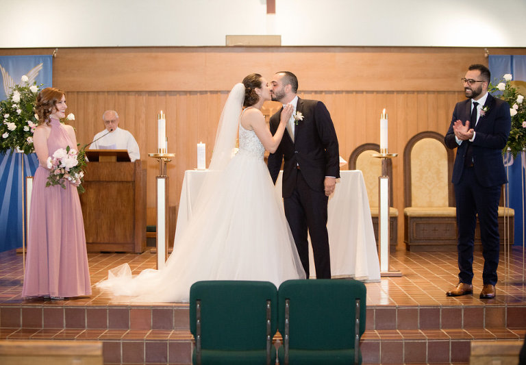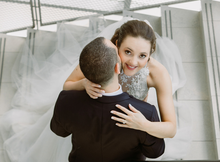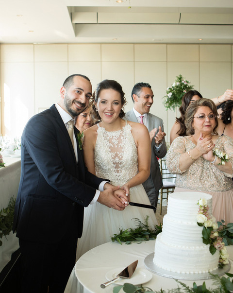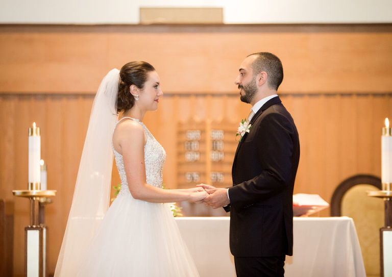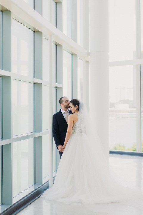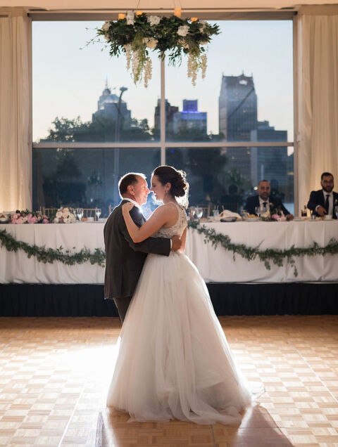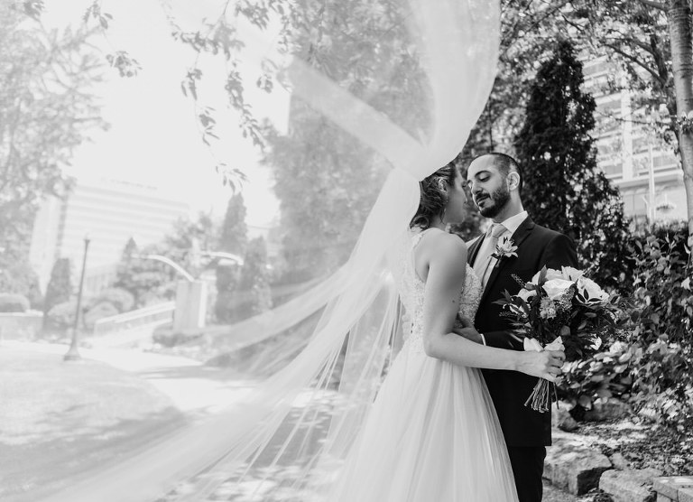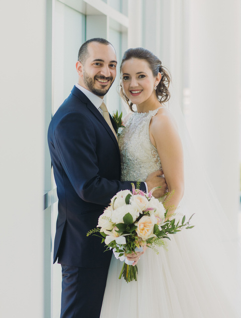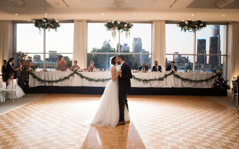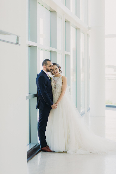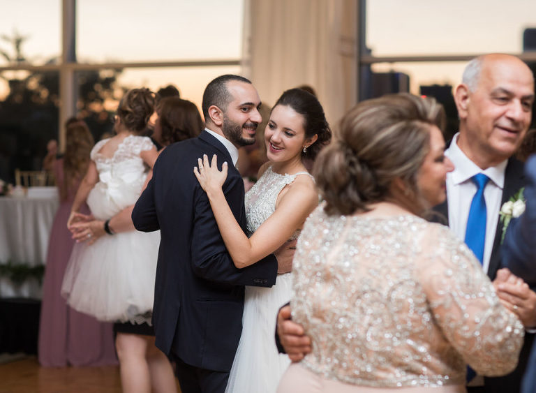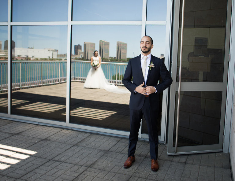 As a Windsor wedding photographer we often get to photograph weddings of people we know and once in awhile a very special wedding comes along. Vanessa and Naseem’s day was one of those. I was honoured to be able to shoot one of my best friend’s sister’s wedding this past summer. The morning was very calm and relaxed as all the girls got ready. Vanessa is a very calm, gentle person to begin with so I knew she would be the essence of an elegant bride. Her gorgeous gown was stunning, sporting a deep illusion neck line. One of my favourite moments of the morning was Vanessa showing her Nona that she has sewed flowers and ribbons from her grandmothers dress into her dress and veil. It was such a touching moment to be a part of! They did their first look at the Art Gallery of Windsor overlooking the skyline of Detroit, where they live! It was such a great moment when Naseem saw his bride for the first time. We did the creative session at the Art Gallery and Dieppe Park and then headed over to the church. The ceremony was a traditional catholic ceremony , and the couple exchanged the vows in front of all of their families and friends. The reception was held at the St Clair Center for the Arts in the gorgeous skyline room. The entrance into the reception was done in a traditional Caldean fashion with drummers getting the part started! The couple danced over to the cake to cut it for the first time as husband and wife! The evening was filled with dancing, laughing, great food and drinks and a fantastic time was had by all. We wish Vanessa and Naseem the very best in all their years to come!